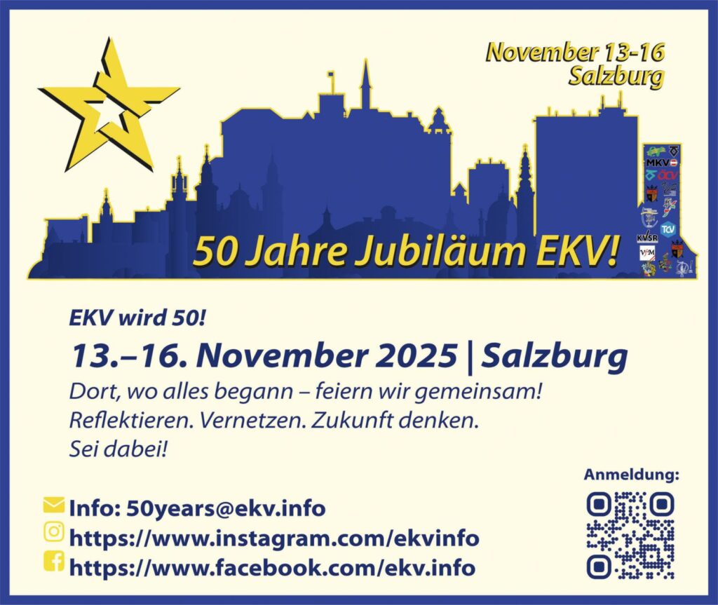 50 Jahre EKV Veröffentlicht am 2. Oktober 202531. Oktober 2025 von Landesaktivitas Einladung zu 50 Jahre EKV